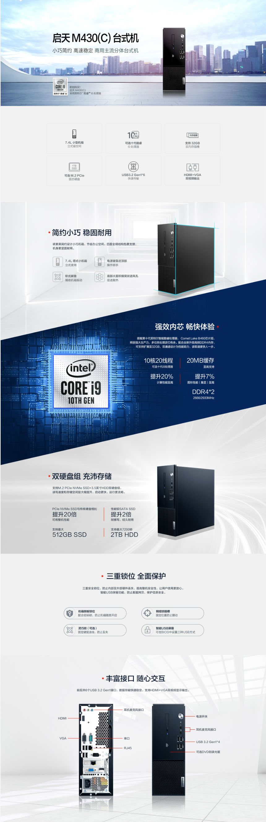 商品名称:联想(Lenovo)启天M430-B002(C) 台式计算机(i3-10100/4GB/1TB/无光驱/19.5英寸)