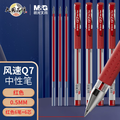 商品名称:晨光(M&G)/0.5mm红色中性笔 水笔替芯套装(6支笔+6支芯)HAGP1037
